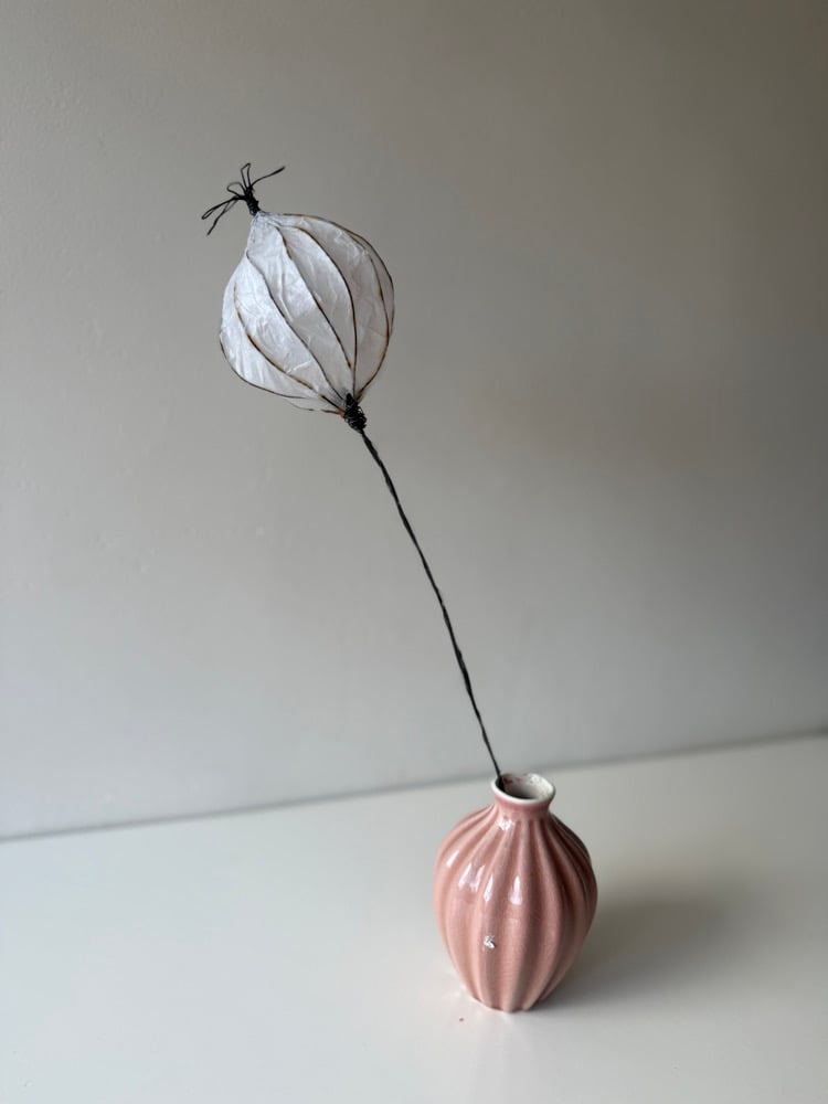 One paper covered wired poppy seed head. Poppy seed head roughly 8cm wide and 12cm in height. Stem length inclusive of head 42cm long - £30